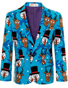 Stilvoll und witzig zugleich: Der OppoSuits Partyanzug Winter Winner für Kinder! Er besteht aus Jacket, Hose und passender Krawatte. Alle Teile sind in einem hellen Blau gehalten und mit witzigen Wintermotiven geziert.