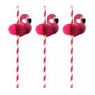 50 Papier Trinkhalme mit Flamingo Wabendeko