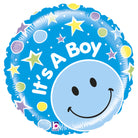 Folienballon Happy Baby Boy mit Smiley 53cm