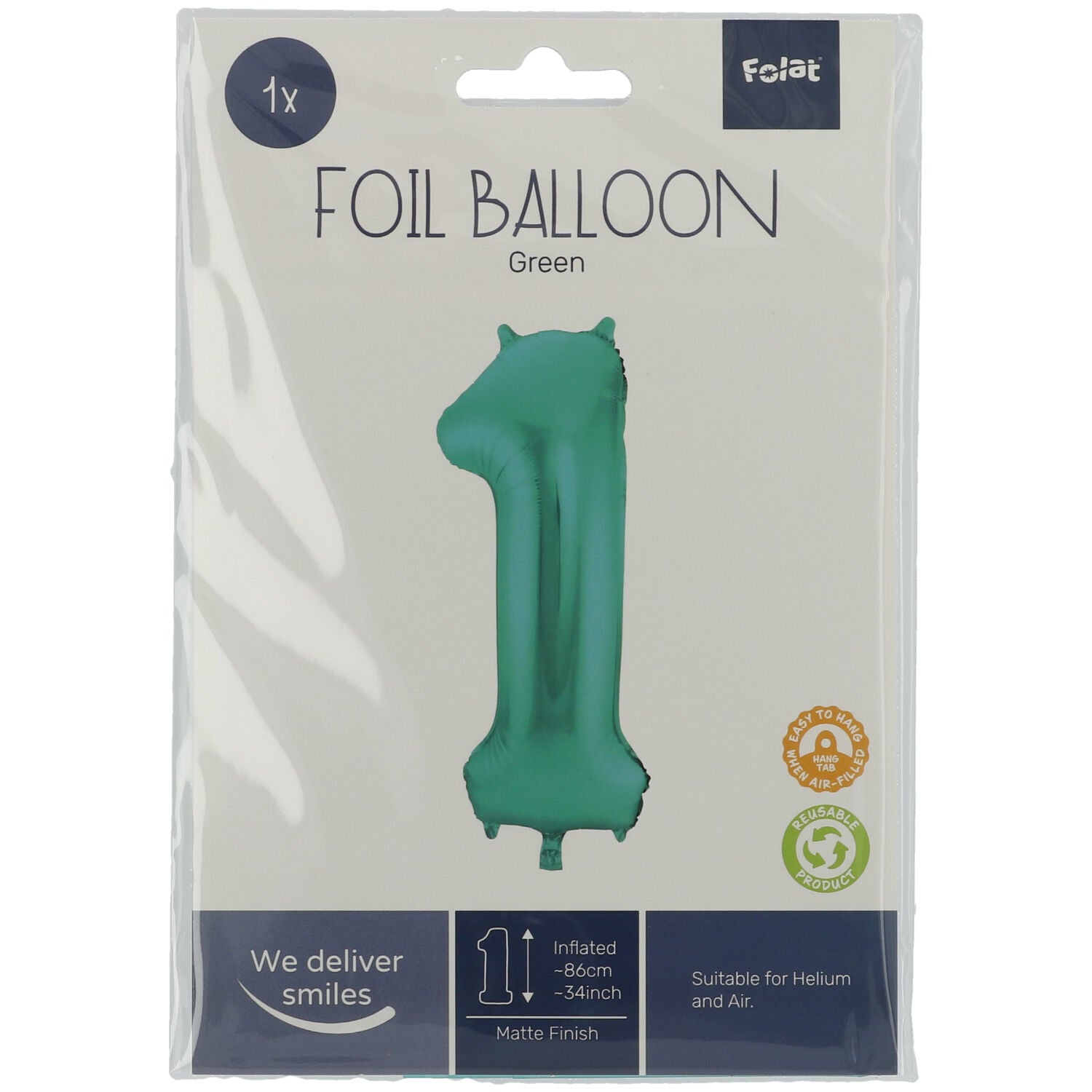 Unsere Zahlen-Folienballons mit einer Höhe von 86cm sind die perfekte Überraschung für Groß und Klein. Egal ob zum Geburtstag, als Tischnummer zur Hochzeit oder zum Jubiläum - Der Folienballon Zahl 1 in Metallic-Grün setzt jeden Anlass passend in Szene. Die Ballons sind für eine Helium- oder Luftfüllung geeignet. Kleine Laschen am oberen und unteren Ende der Zahl machen eine Dekoration als Girlande möglich. Der Kreativität sind mit den wunderbaren Luftballons keine Grenzen gesetzt.