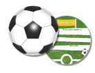 6 Einladungskarten in form einen Fußballes , Rückseite mit deutschem Text Durchmesser 14 cm.