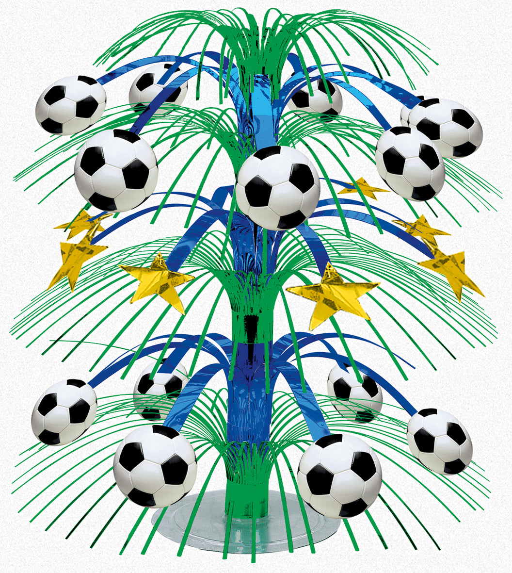 Auf deiner Party fehlt noch etwas und sie soll absolut perfekt werden? Mit der Fußball Star Tischfontäne wird auch dein Tisch im Fußball Fieber versinken. Sie besticht mit ihren grünen sowie blauen Deko Elementen, an denen Fußbälle und goldene Sterne hängen. Jetzt kann die Party kommen!