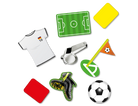 XXL Konfetti Spielfeld Deko , für Tisch- und Flächendekoration , 24 Stück XXl Konfetti, 300 g Karton , Die einzelnen Teile sind ca. 4-6cm groß, beidseitig bedruckt und formgestanztTrikot,Pfeife,Eckfahne,rote und gelbe Karte, Fußballschuhe