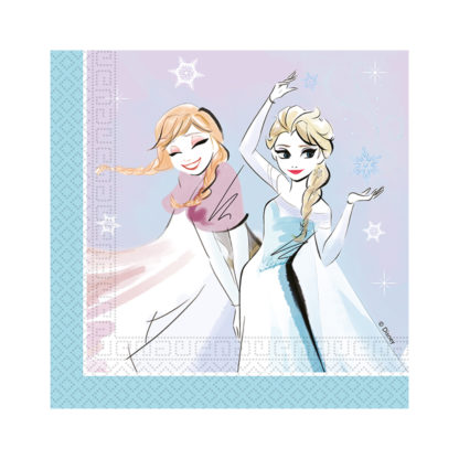 Bei kleinen Frozen Fans sollten Anna und Elsa am Geburtstagstisch nicht fehlen. Passend zu Bechern, Tellern und Tischdecke präsentieren sich die 20 Sparkled Frozen Servietten. Das hübsche Aquarell Motiv mit Anna und Elsa lässt den Geburtstag deiner kleinen Prinzessin ganz bestimmt unvergesslich werden. Die Servietten sind 33 x 33cm groß.