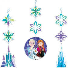 Wenn ein Frozen Fan Geburtstag feiert muss sich das ganze Wohnzimmer in einen funkelnden Eispalast verwandeln. Hole dir mit den 3 Frozen Kristallpalast Hängern Elsas fantastische Magie auf die nächste Geburtstagsfeier. Auf den drei 60cm langen Motivhängern sind das Schloss von Arendelle abgebildet, Anna, Elsa und Olaf sowie Elsas Palast aus purem Eis.