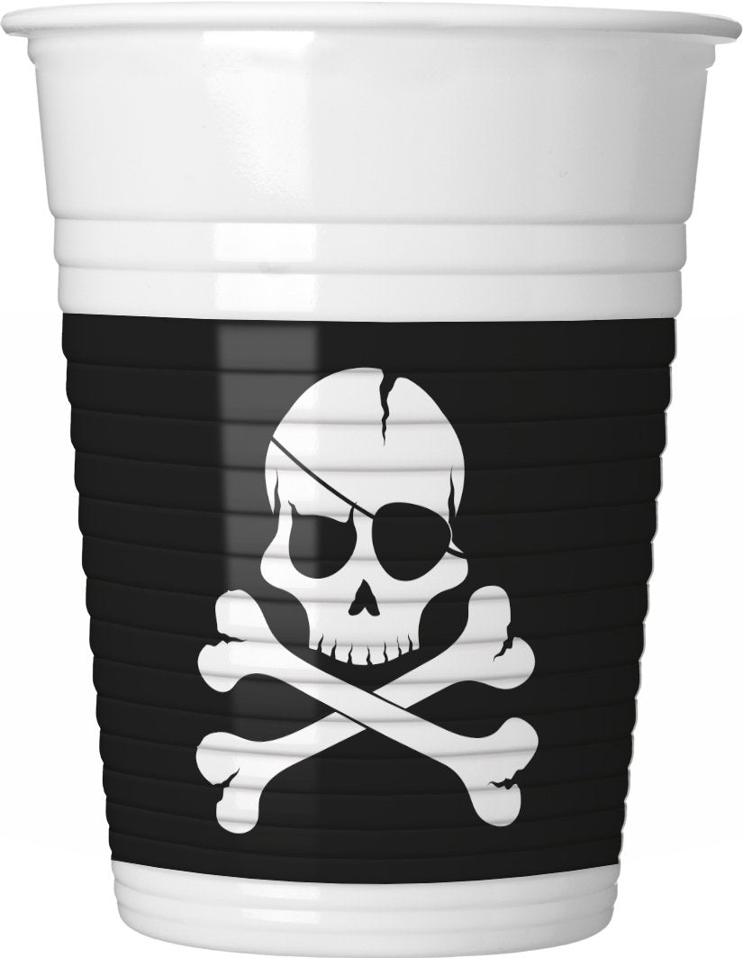 Deine Party braucht noch die passende Deko? Mit den Kunststoffbechern Pirates 8 Stk. hast du zugleich eine tolle Mottodeko doch auch praktisches Zubehör um deine Party sicher zu gestalten. Das ist besonders bei Kindergeburtstagen super praktisch. Dank des gruseligen Piratenmotivs wird deine Party ein super Hingucker werden!