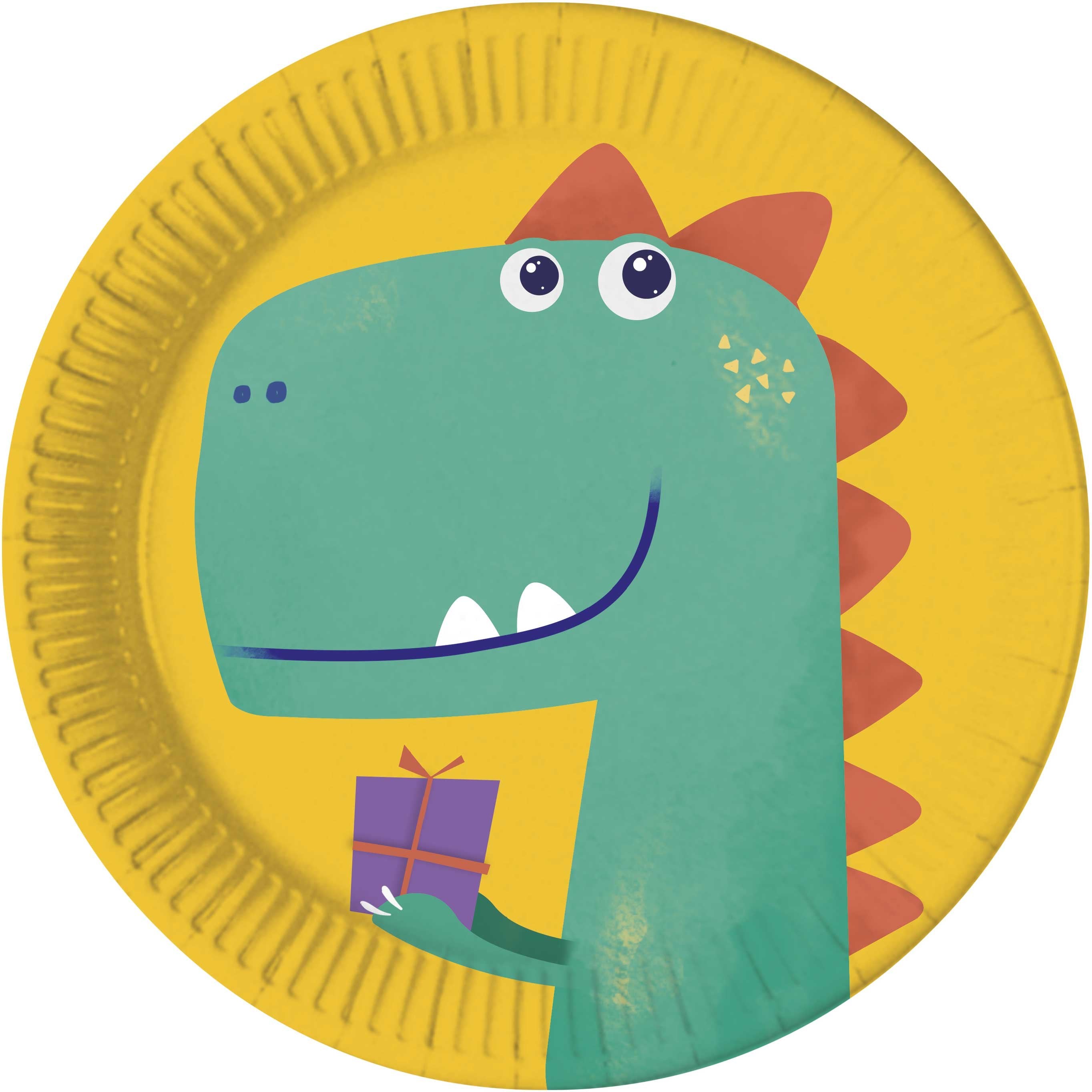 Happy dino-tastischen Geburtstag wünscht dir unser kleiner Dino Rexi! Da Rexi nicht nur Geburtstage liebt, sondern auch ein Herz für Mutter Natur hat, sind unsere Dino Geburtstag Teller besonders umweltfreundlich.Sie sind 23cm groß und reichen für acht hungrige Partygäste.