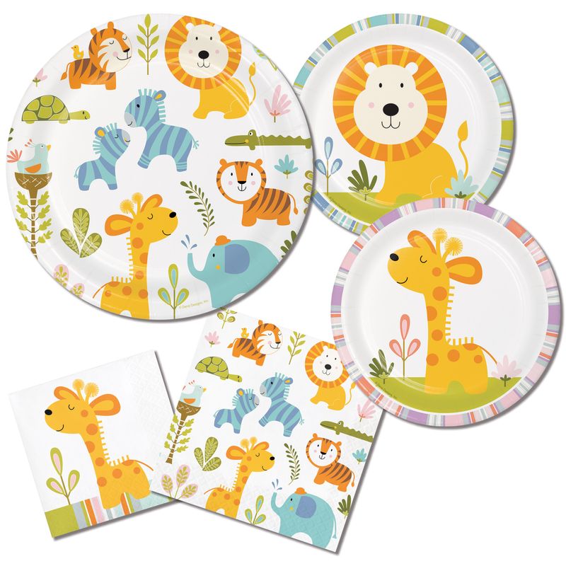 8 kleine Teller Baby Safari mit rosa Rand