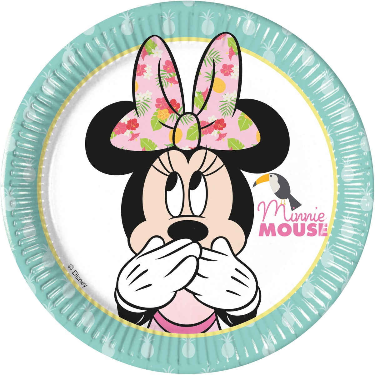 Genieße deinen Geburtstagskuchen auf den süßen Tropical Minnie Maus Papptellern im tropischen Design. Kombiniere die Teller zusammen mit unseren vielen verschiedenen Minnie Maus Tischdekoartikeln und feier einen unvergesslichen Geburtstag unter dem Blick der kleinen Maus.