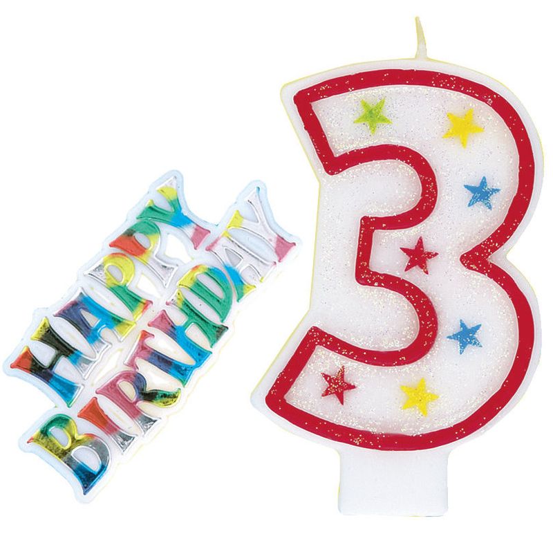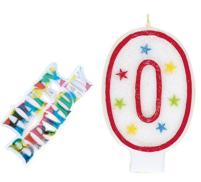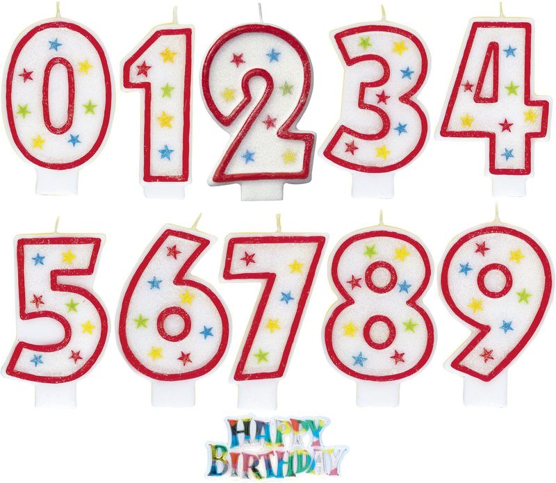 Auswahl Zahlenkerze Rot mit bunten Sternen Zahl 0-9