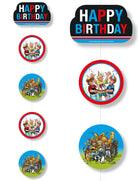 Der Die drei Fragezeichen Kids Deckenhänger hat eine Länge von 1,5m und ist beidseitig bedruckt. Die 4 runden Schilder haben eine Größe von 18cm, das Kopteil ist 25cm x 15cm groß und mit der Aufschrift Happy Birthday bedruckt. Eine tolle Deko für alle kleinen Fans der drei kleinen Detektive Justus, Peter und Bob.