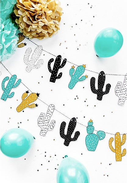 Die Dino Island Kaktus Girlande ist perfekt für eine fantastische Dino Geburtstagsparty. Das süße Kaktus Motiv in verschiedenen Farben passt perfekt zu den anderen Dino Island Dekorations Sets. Mit einer Länge von 1,3m lässt sie sich ganz einfach im Raum platzieren und sorgt für eine tolle Atmosphäre.
