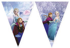 Zum Geburtstag darfst du bei der Raumdeko ordentlich Gas geben. Um dein Wohnzimmer in die zauberhafte Welt von Anna und Elsa zu verwandeln ist die Frozen Winterwald Wimpelkette ideal. Die Wimpelkette zeigt Anna und Elsa beim Eislaufen. Sie besteht aus 9 einseitig bedruckten Wimpeln, die 17,5 x 25,5cm groß sind. Insgesamt ist die Frozen Wimpelkette 2,3m lang.