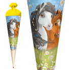 Schultüte Blumenpferde rund Schutzspitze Filzverschluss 70cm