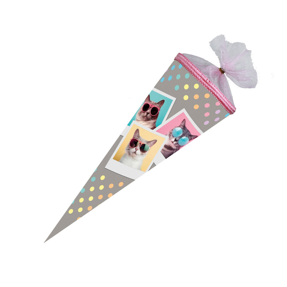 Schultüte Cool Cats rund mit Tüllverschluss 35cm