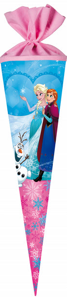 Diese zauberhafte Schultüte ist bedruckt mit der Eiskönigin Elsa, ihrer Schwester Anna und ihrem Freund Olaf dem Schneemann. Die drei Winterfreunde sind die perfekte Unterstützung zur Einschulung und ein Traum für alle kleinen Mädchen.