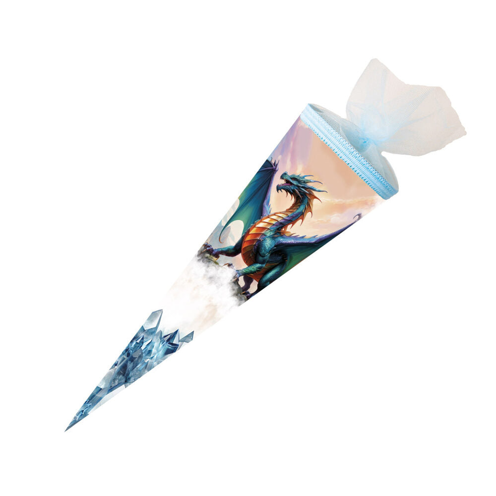 Schultüte Kristall Drache rund mit Tüllverschluss 50cm