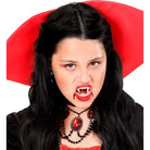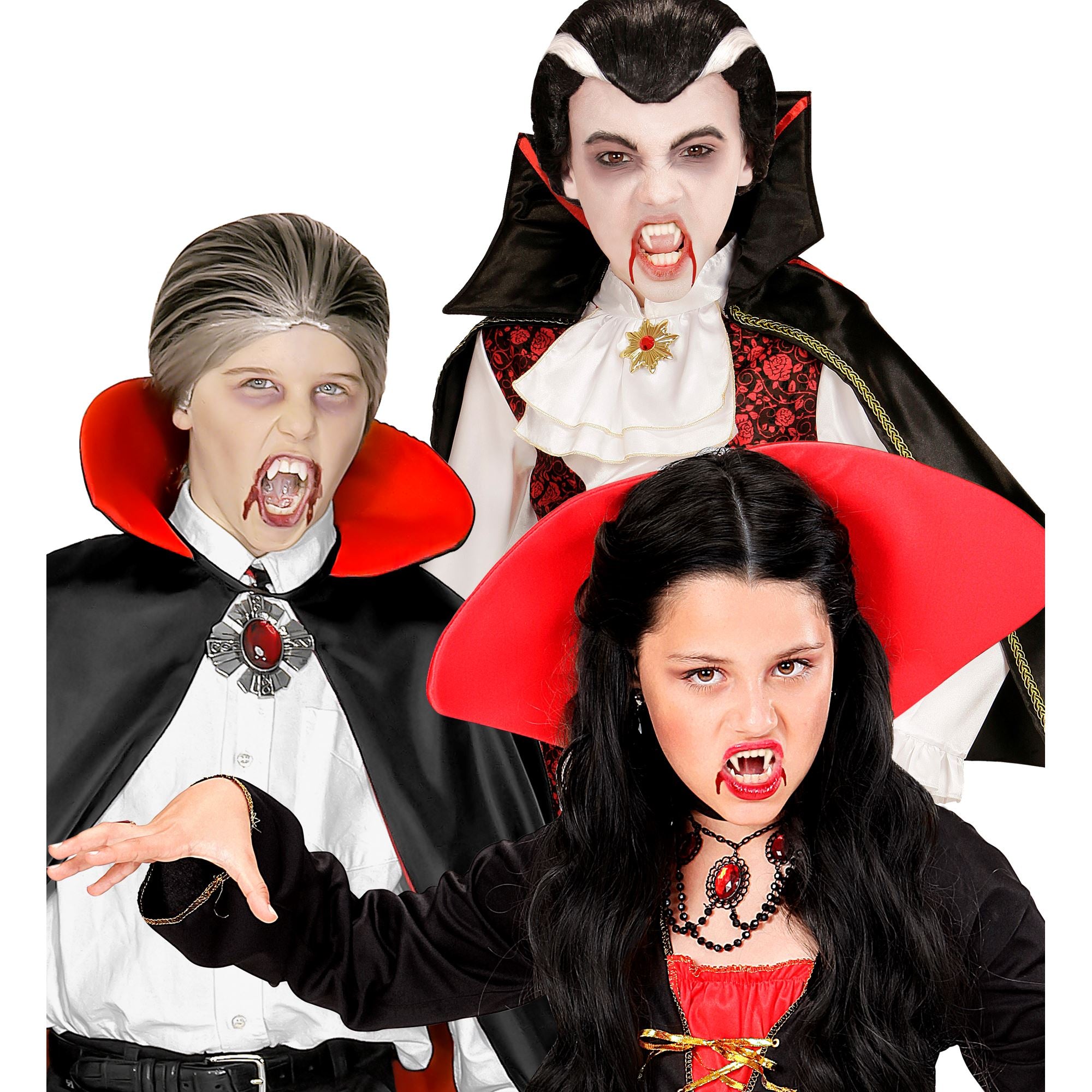 Das Grusel Vampir Gebiss Kinder wird ganz einfach auf die obere Zahnreihe gesetzt und schon kann der Gruselspaß losgehen! Noch schauriger ist dein Look, wenn du dir noch ein bisschen künstliches Blut um den Mund herum machst oder mit rotem Make-up Blut einfach etwas Blut schminkst.