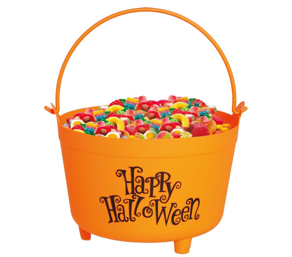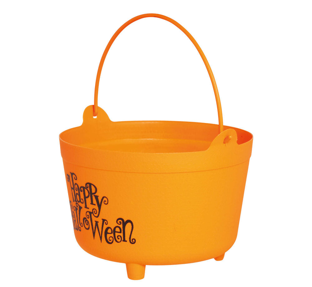 Ein farbenfroher Klassiker für deine Halloween-Deko! Dieser orangefarbene Hexenkessel mit schwarzer Aufschrift „Happy Halloween“ ist nicht nur ein echter Blickfang, sondern auch superpraktisch – ob als Süßigkeitenschale, Deko-Element oder als Teil deines Kostüms.