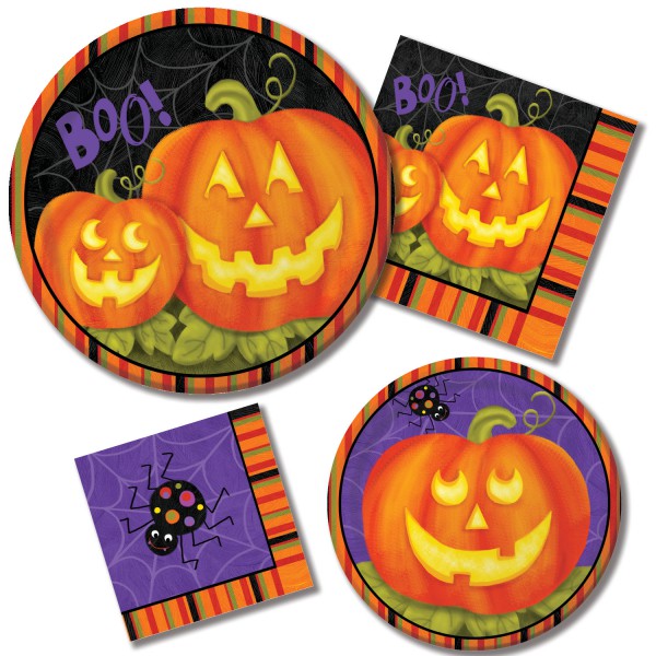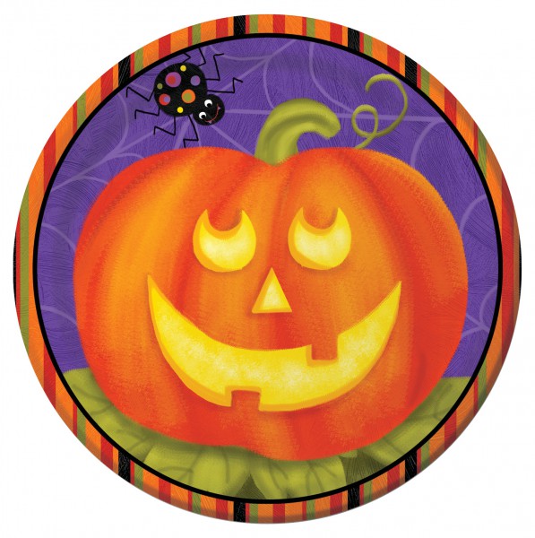 8 kleine Halloween Papp Teller Jolly Jack Kürbis