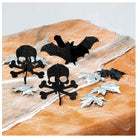 3 Mini Totenkopf Fledermaus Glitzer Tischaufsteller