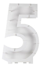 Der Befüllbare Zahl-5-Ballonstand ist ein beeindruckendes Dekorationselement für besondere Anlässe wie Geburtstage, Jubiläen oder Feierlichkeiten, bei denen die Zahl 5 im Mittelpunkt steht. Dieser weiße Stand ermöglicht es dir, die Zahl 5 kreativ zu gestalten, indem du ihn mit Ballons, Blumen oder anderen Dekoelementen befüllst. Der stabile Papprahmen ist 81 x 58 x 14cm groß. Ob als Teil einer Zahlenkombination oder als Einzelstück: Dieser Ballonstand bietet eine originelle und festliche Möglichkeit, deine Feier in Szene zu setzen.