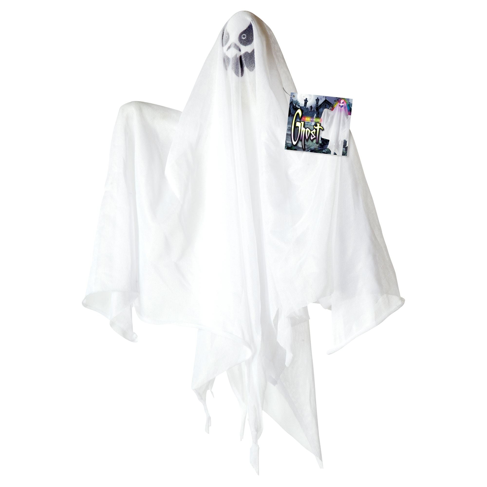 Das leuchtende Gespenst mit Farbwechsel ist DAS Accessoire für deine Halloween Party oder deine spezielle Geisterstunde. Es lässt sich gut aufhängen und sogar die 3 benötigten LR44 Batterien sind im Umfang enthalten. Der Farbwechsler geht von UV bis neongelb. Die Hängefigur hat eine Länge von ca. 58cm.