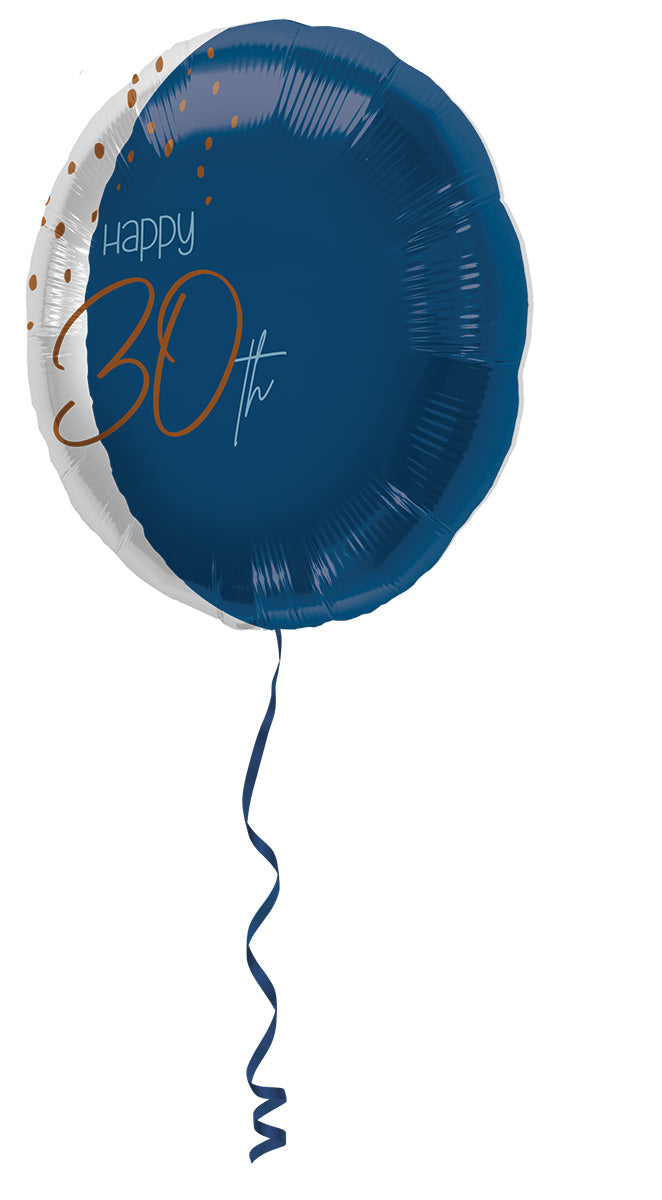 Die Vorderseite des 30. Geburtstag Folienballon Elegant blue ist transparent.