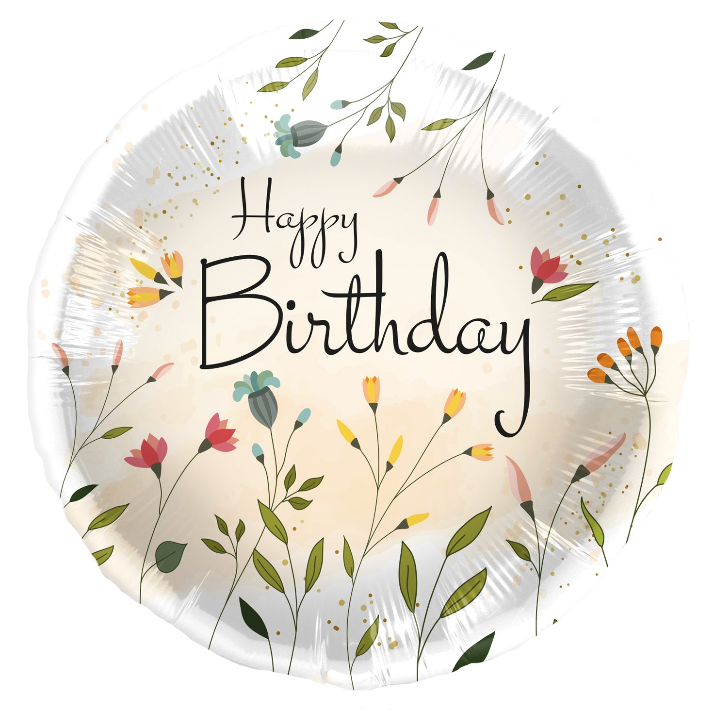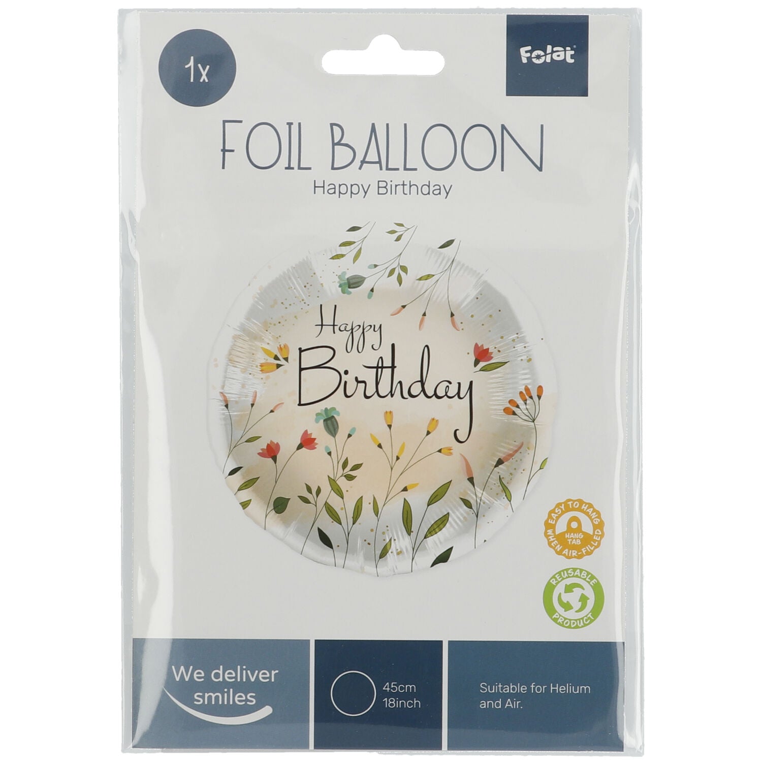 Dieser Happy Birthday Folienballon Blumenfeld 45cm ist der Hingucker jeder guten Sommer Geburtstagsparty. Er lässt sich sowohl mit Luft als auch mit Helium befüllen.