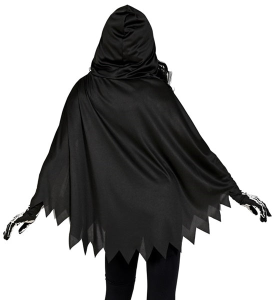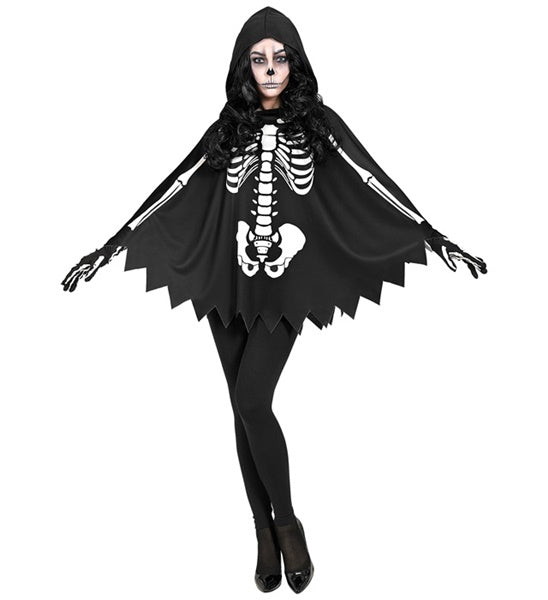 Eine schnelle und unkomplizierte Möglichkeit sich zu Halloween zu verkleiden bietet dieser Kapuzenumhang mit Skelett. In Kombination mit einem entsprechend Make Up und weiterem gruseligen Zubehör komplettierst du deinen Look.