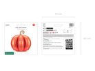Stehender Folienballon 3D Kürbis in Orange mit goldenem Stiel. Maße nach dem Aufblasen ca. 90 x 90 cm (35.4 x 35.4''). Das Set enthält 8 aufblasbare Elemente, 4 Befestigungsclips, Gelaufkleber und einen Strohhalm.