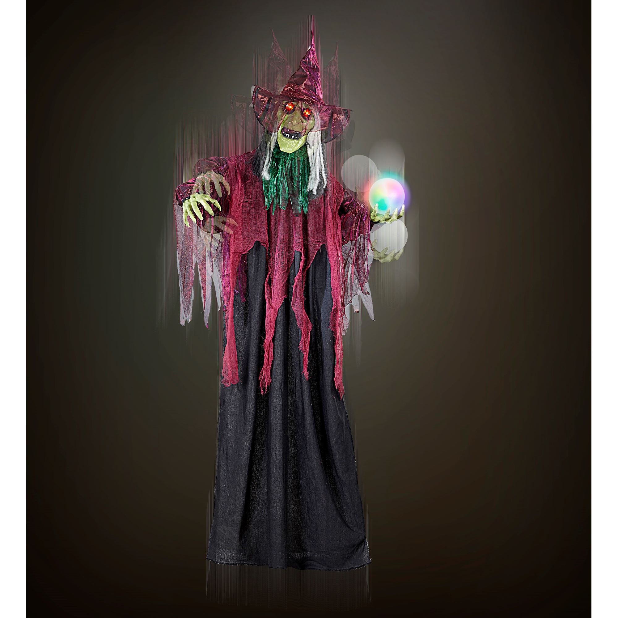 WIDMANN Deko Animierte sprechende & lachende Hexe mit LED Augen & Wahrsagerkugel 170cm