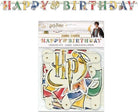 Auch fleißige Zauberschüler und Zauberschülerinnen haben mal Geburtstag. Für die passende Dekoration und Feierstimmung sorgt die "Harry Potter Hogwarts" Girlande. Die Girlande mit dem bunten Schriftzug "Happy Birthday" ist 1,82m lang. Die einzelnen Buchstaben sind zwischen 12cm und 13cm hoch.