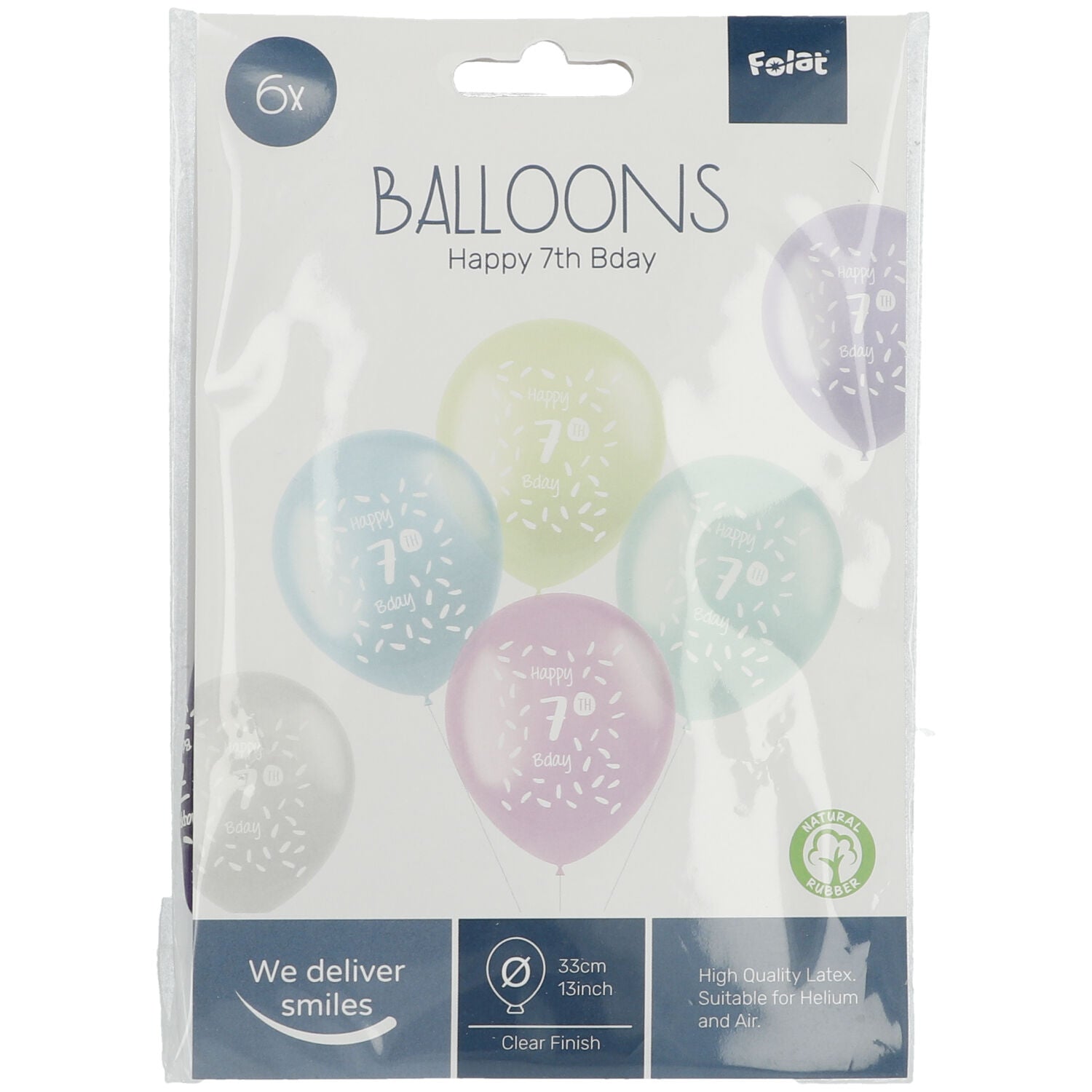 Les Happy 7th B-Day Latexballons sont essentiels pour une fête d'anniversaire pleine de vie. Avec leur diamètre d'environ 33cm, ils garantissent une décoration festive qui ravira petits et grands. Assure-toi que cette journée soit mémorable avec ces ballons !