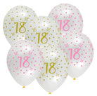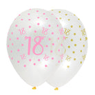 6 Luftballons zum 18. Geburtstag durchsichtig mit Rosa und Gold bedruckt