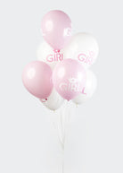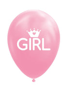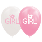 8 Luftballons für die Babyparty It's a Girl und Krönchen in Weiß und Rosa