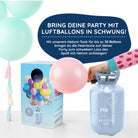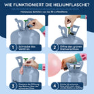 Heliumflasche für 30 Ballons in Hellblau mit schwarzem Aufdruck, Inhalt ca. 0.189 m³.