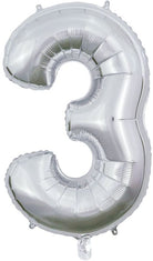Folien Ballon in Form der Zahl 3 in Silber - Medium 66 cm
