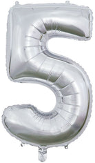Folien Ballon in Form der Zahl 5 in Silber - Medium 66 cm