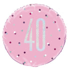 Folien Ballon Pink Dots Glitzer zum 40. Geburtstag