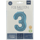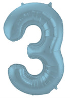 Folienballon Zahl 3 Pastellblau Metallic Matt 86cm