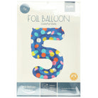 Dieser Folienballon Zahl 5 bunte Dots 86cm ist sowohl für Luft als auch für Helium geeignet.