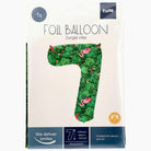 Exotischer Partyspaß garantiert! Mit unserem Folienballon Zahl 7 Dschungel im Urwald-Look setzt du starke Akzente auf jeder Geburtstagsfeier oder Mottoparty. Das tropische Design mit Monstera-Blättern, bunten Aras und süßen Flamingos macht den 86cm großen Folienballon zum echten Blickfang!