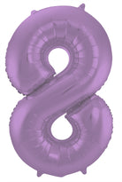 Dieser Folienballon Zahl 8 matt lila 86cm eignet sich sowohl für Helium als auch für Luft.