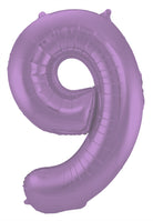 Dieser Folienballon Zahl 9 matt lila 86cm eignet sich sowohl für Helium als auch für Luft.