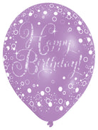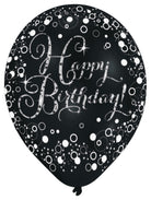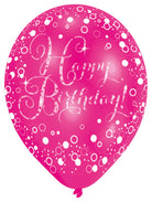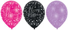 6 funkelnder Luftballons Happy Birthday pink lila schwarz 27,5cm