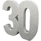 Tischdeko glitzernde Zahl 30 silber 20cm