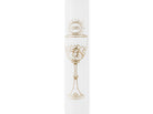 Die 4 Kerzen Kommunion IHS in Weiß sind 29cm lang und besonders edel auf christlichen FeierlichkeitenAbgebildet sind ein Kelch sowie das Christusmonogramm IHS in Gold.