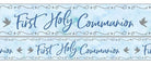 Gestalte tolle Dekorationen zur Kommunion mit unserem Erstkommunion Folienbanner in Blau. Das Banner präsentiert sich in einem zarten Himmelblau, das von Friedenstauben und dem Handlettering-Schriftzug "First Holy Communion" abgerundet wird. Insgesamt hat das Banner eine Länge von 2,7m