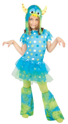 Kecker als keck und süßer als süß: das freche Monster Eveline Kinderkostüm. Es besteht aus einem blau-grün gepunktetem Kleid mit vielen Tüllverzierungen und einem Plüschrock. Die Monster Mütze macht das ganze Kostüm erst zu einem liebenswerten Ungeheuer. Mit Hörnern und verträumt dreinblickenden Augen kann sich niemand diesem Blick entziehen.